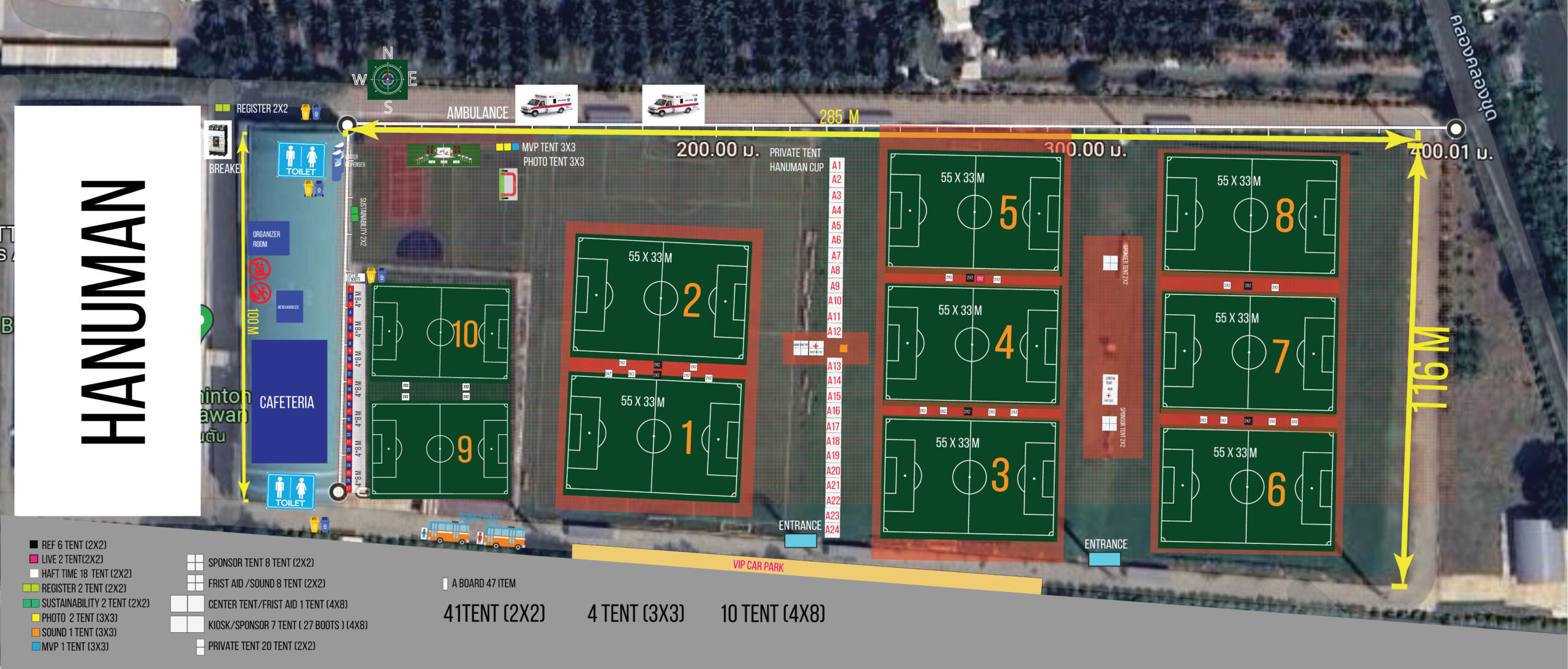 The football pitches can accommodate approximately 1,000 players and spectators.